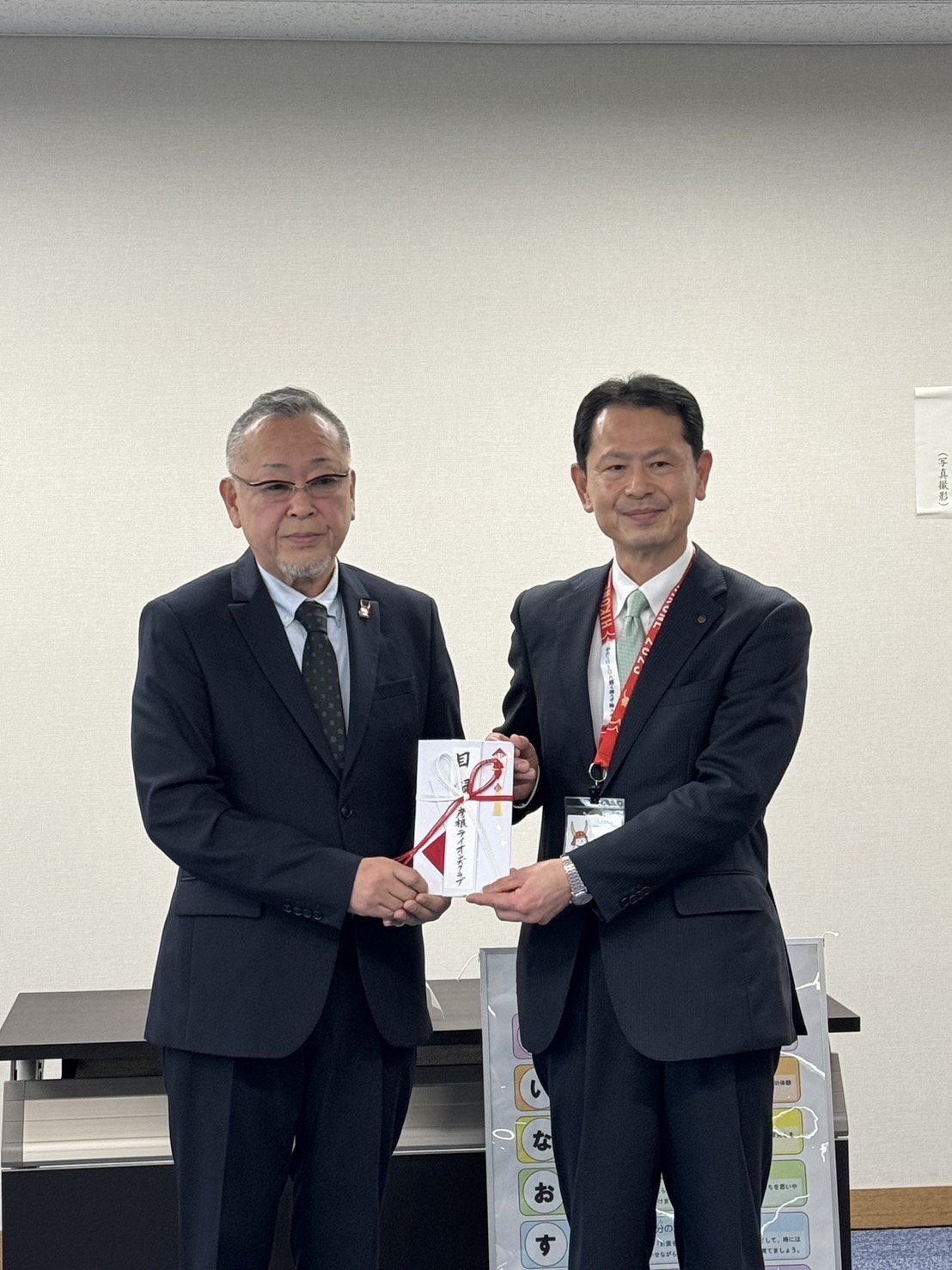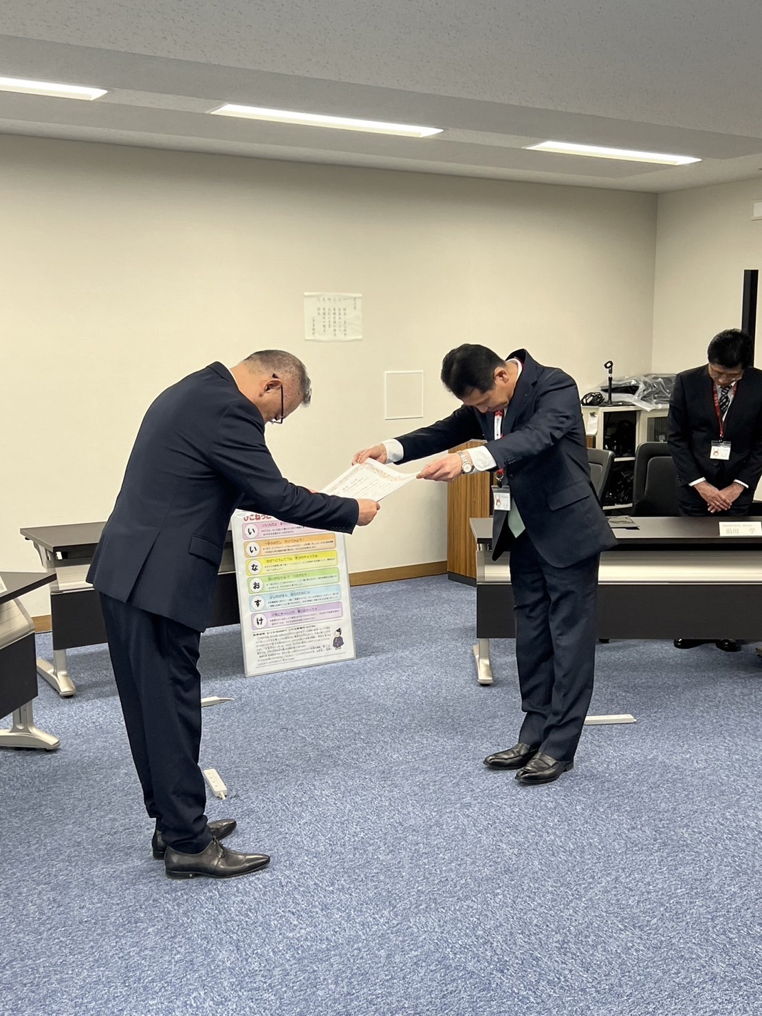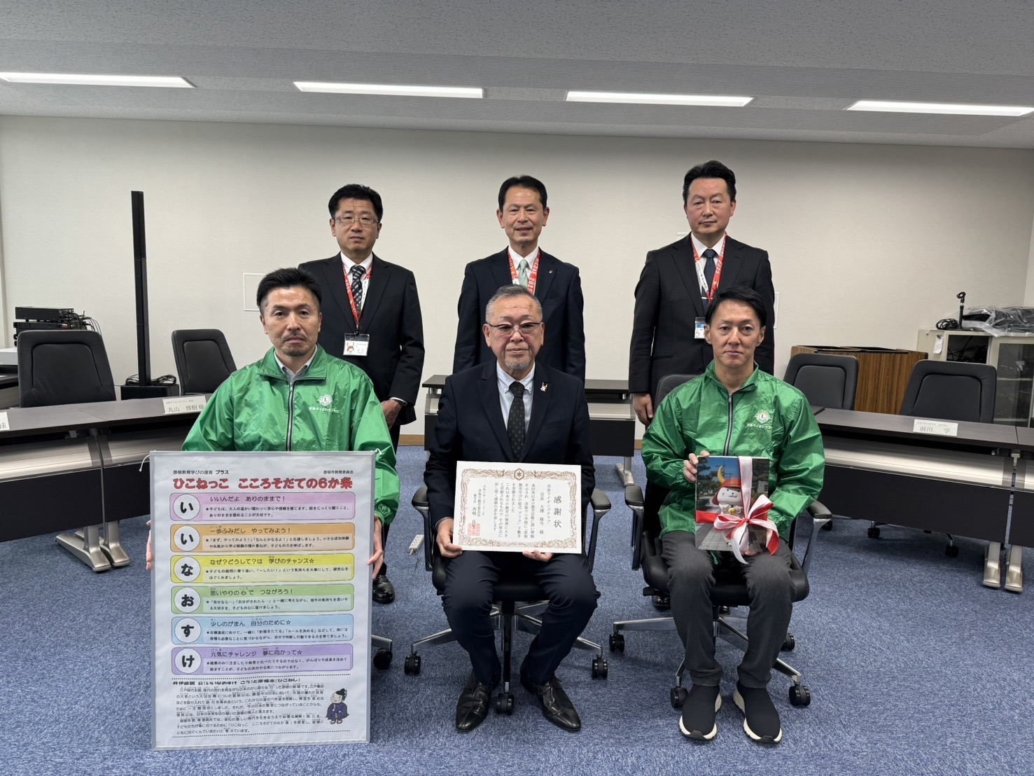 彦根市教育委員会に対して小学校への寄付として「彦根教育 学びの提言 プラス」下敷きの贈呈式が彦根市役所にて行われました。