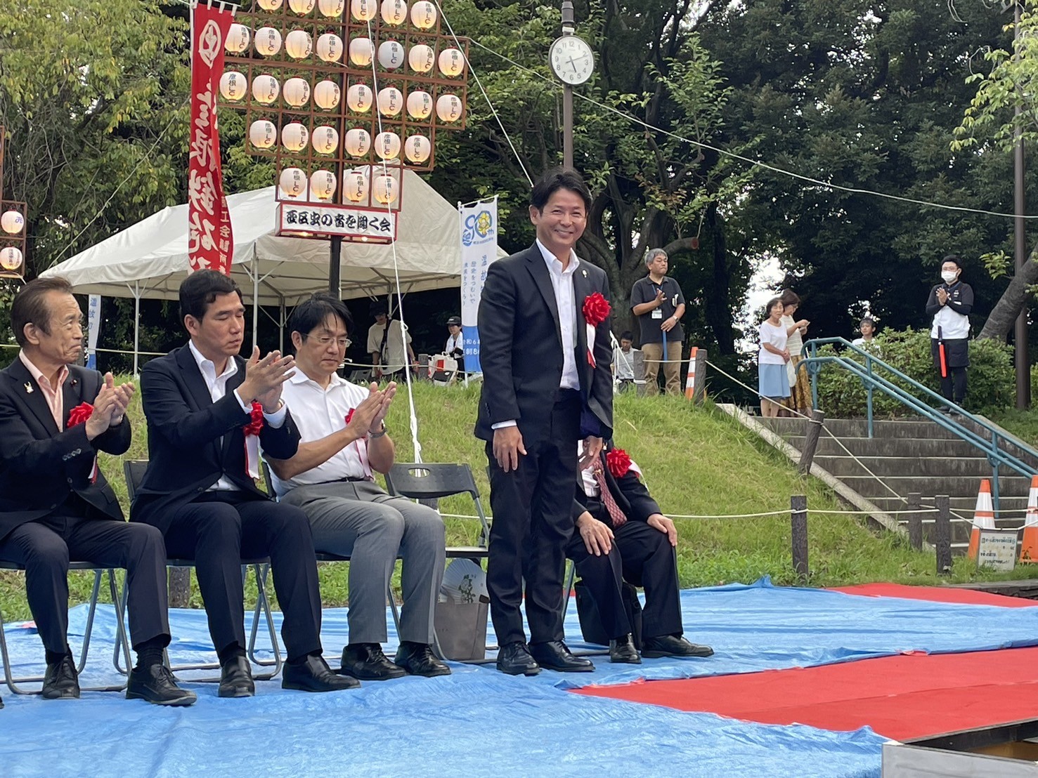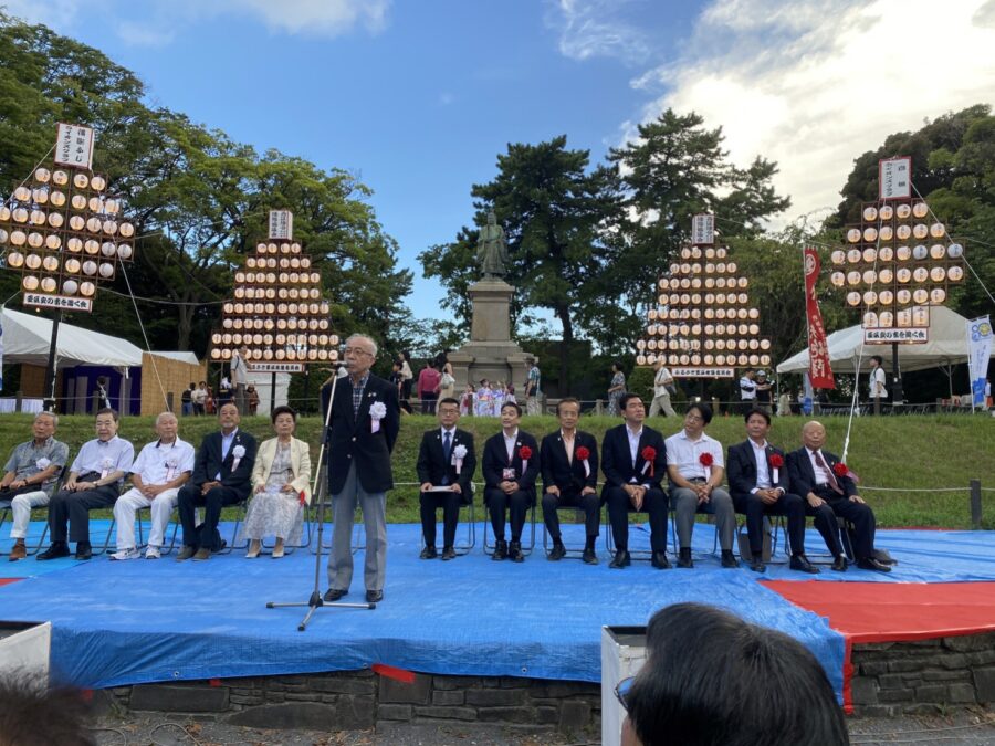井伊直弼公の銅像の下、記念式典が盛大に行われました。