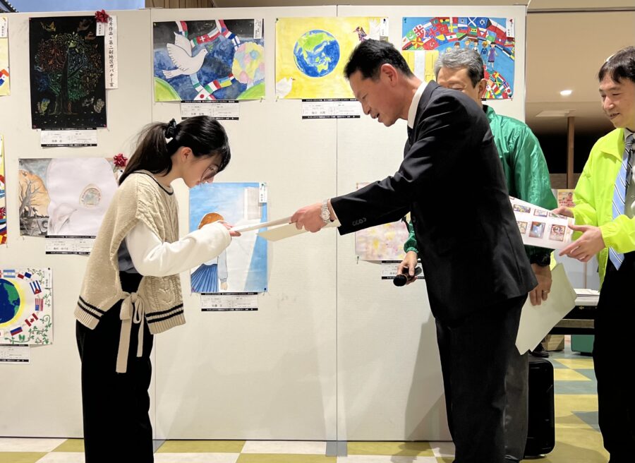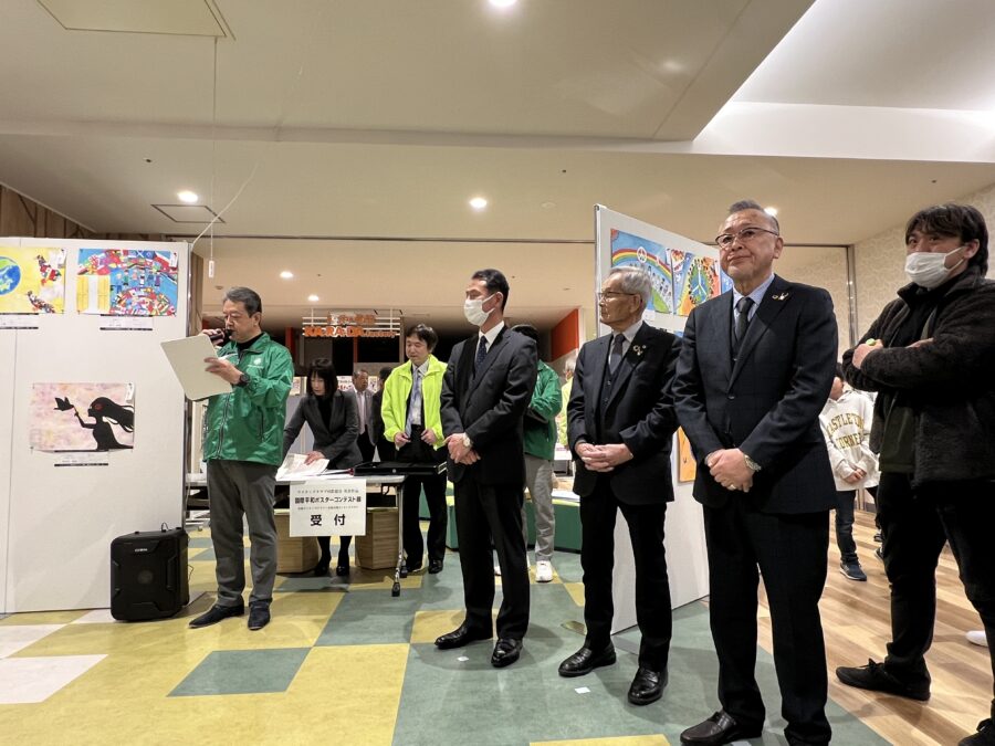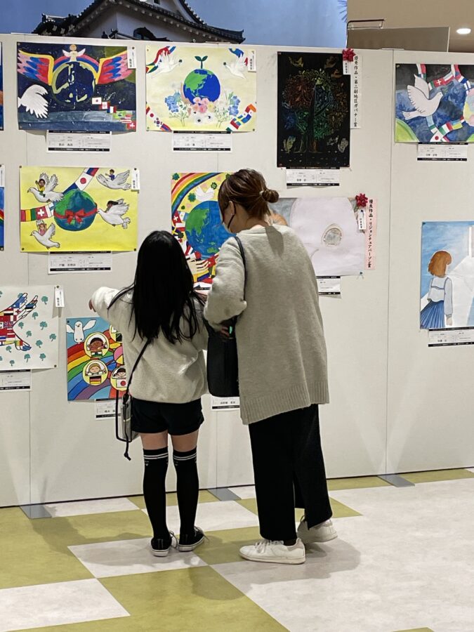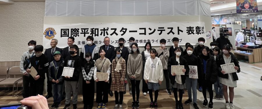 彦根ライオンズクラブと彦根金亀ライオンズクラブの共催による第36回国際平和ポスターコンテストの展示会・表彰式がビバシティ彦根2階みどりの広場で行われました。