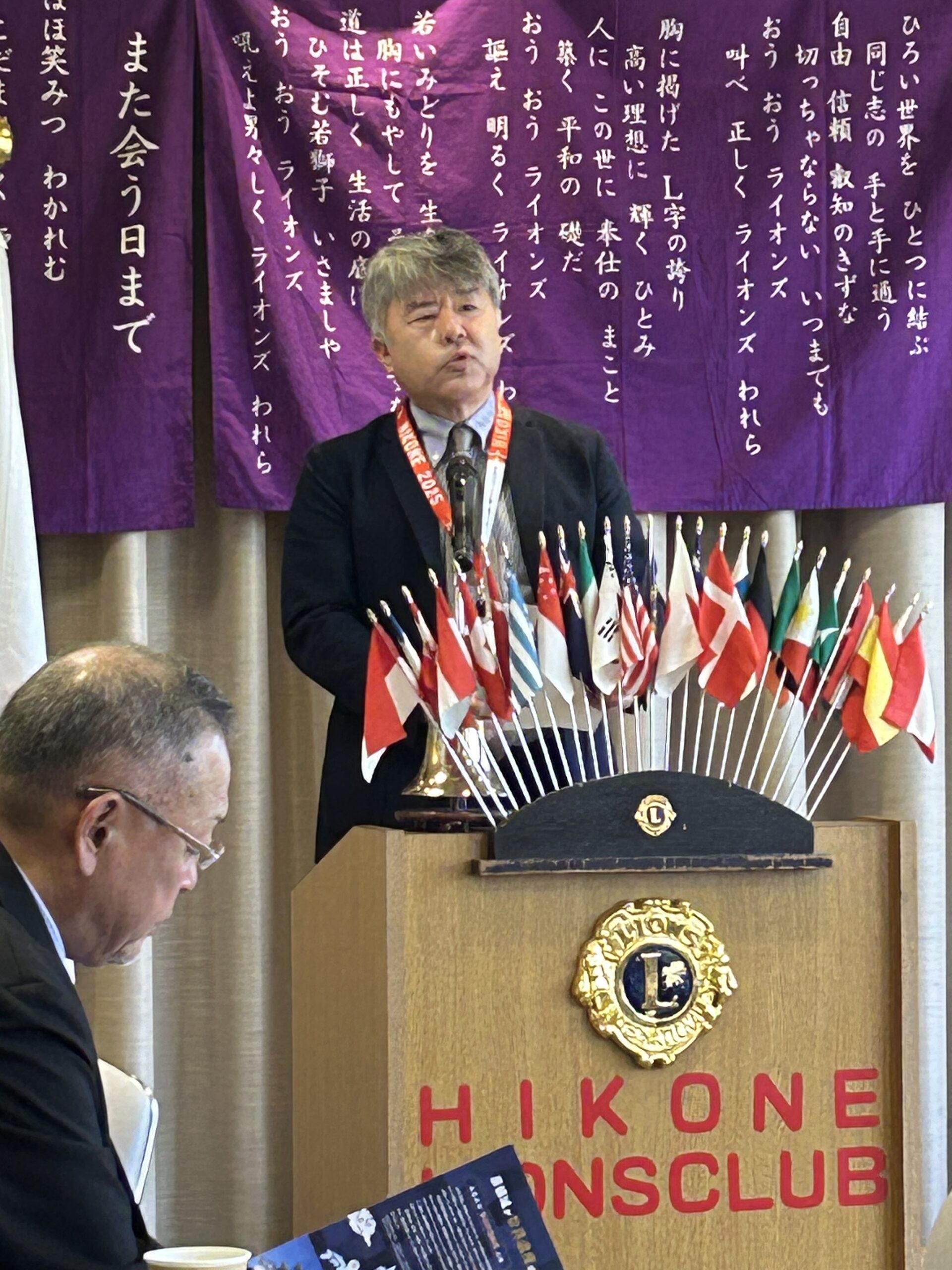 12月第1例会 本日のゲストは彦根城世界遺産登録推進室長補佐の三尾次郎氏にお越しいただきました。