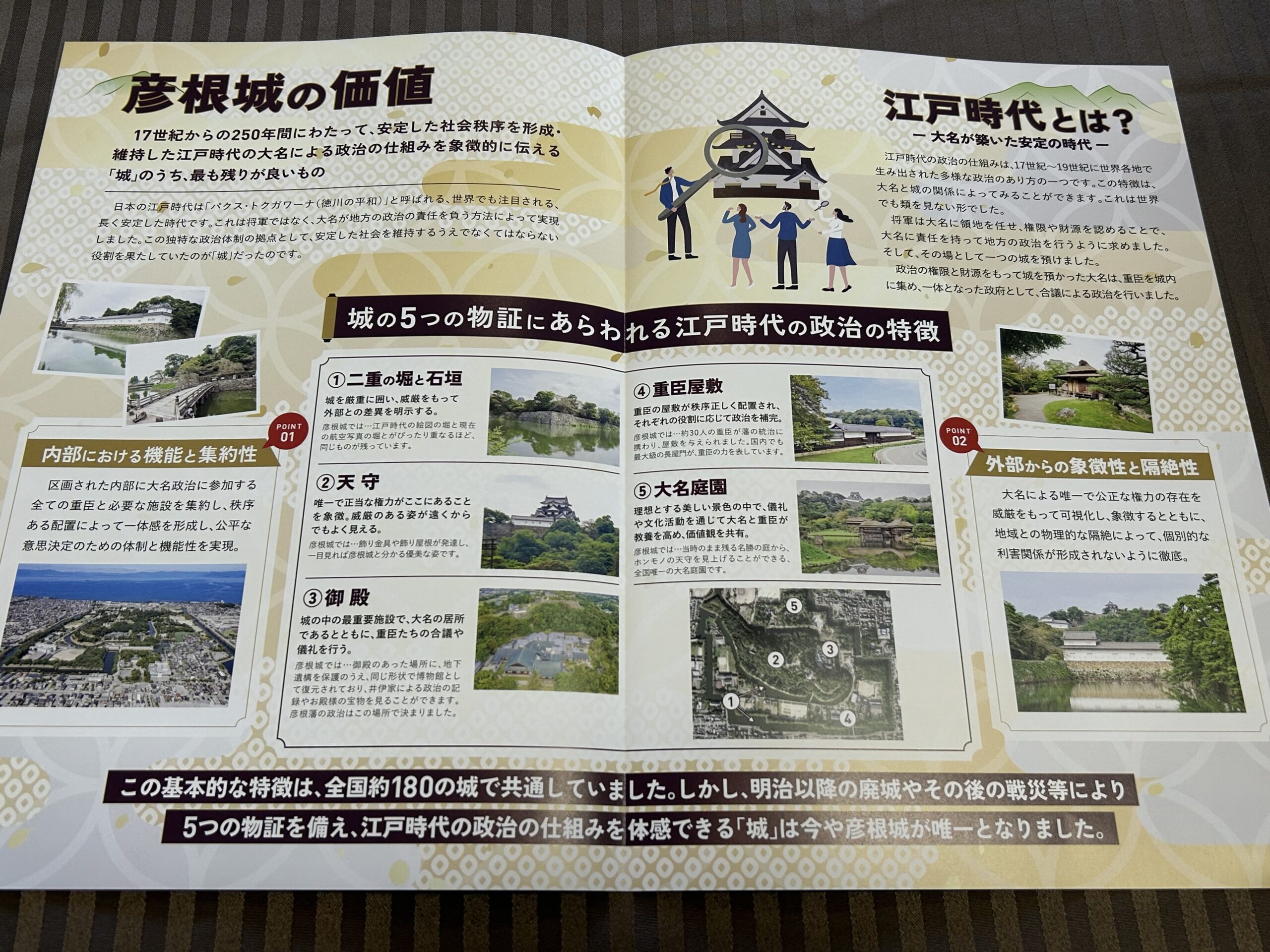の5つの物証を備えたお城は日本では今や彦根城のみであり、江戸時代の政治の特徴そのものであるとの事です。