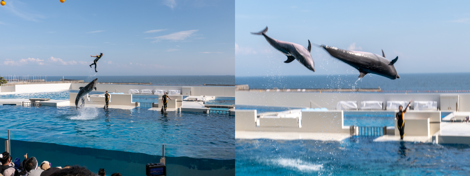 そして続けざまに、15:30からイルカショー。4頭のイルカたちが、身軽ですばやく、また愛嬌のあるステージを披露してくれました。